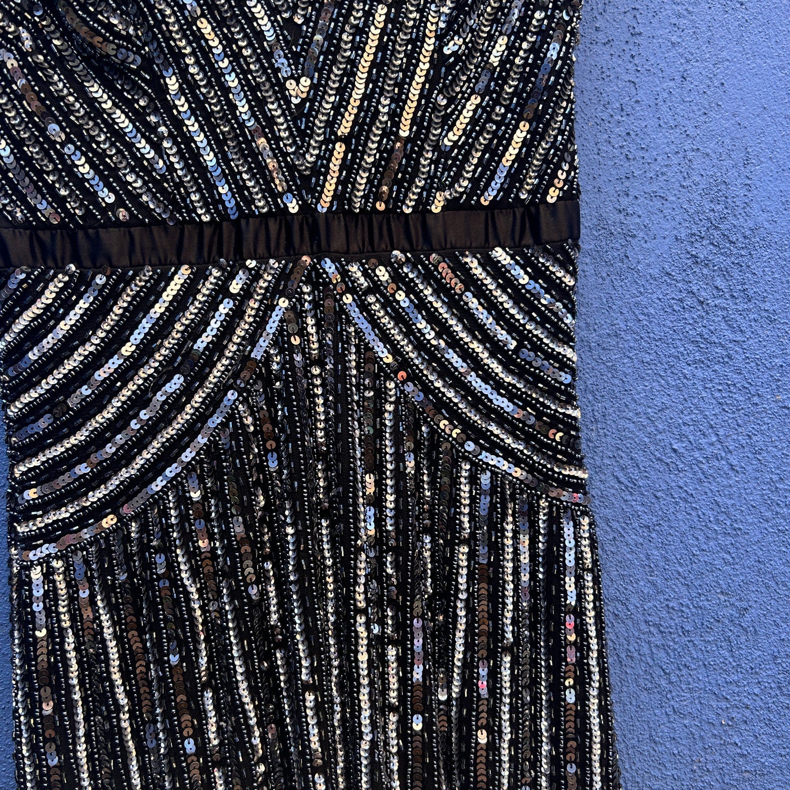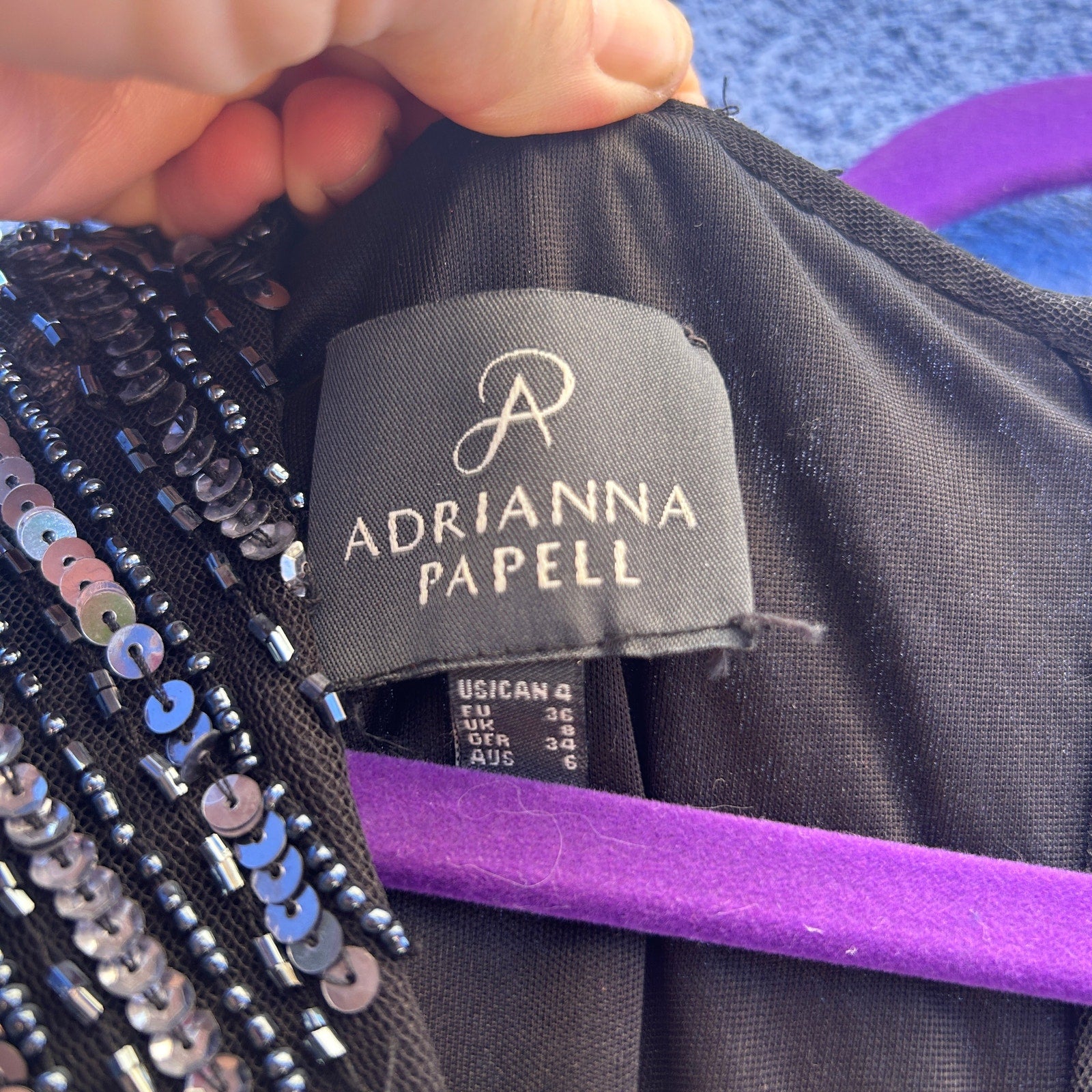 adrianna papell sequin and bead embellished evening gown size 4