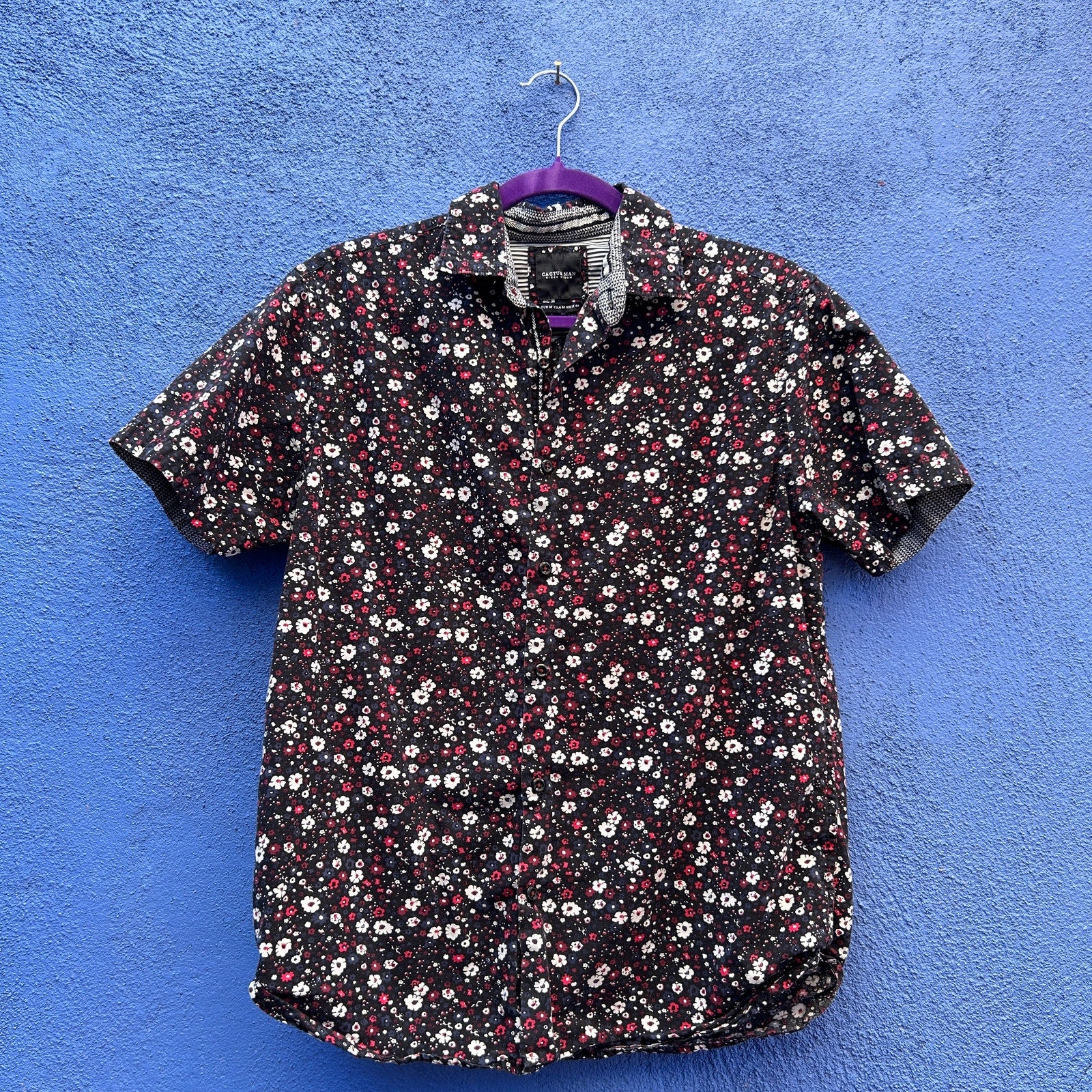 cactus man men's floral print short sleeve button down size medium