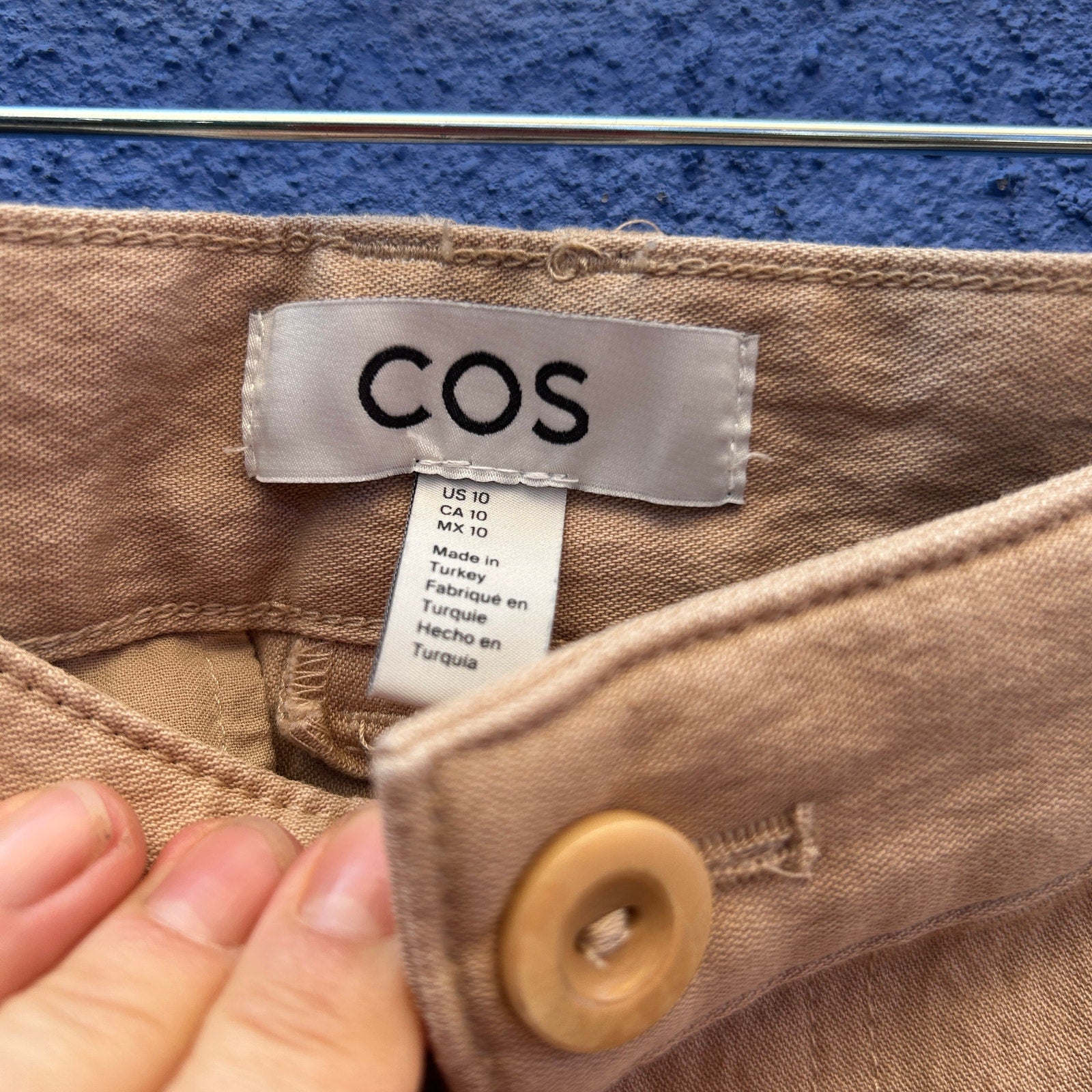 COS tan waxed ponte khaki pant size 10