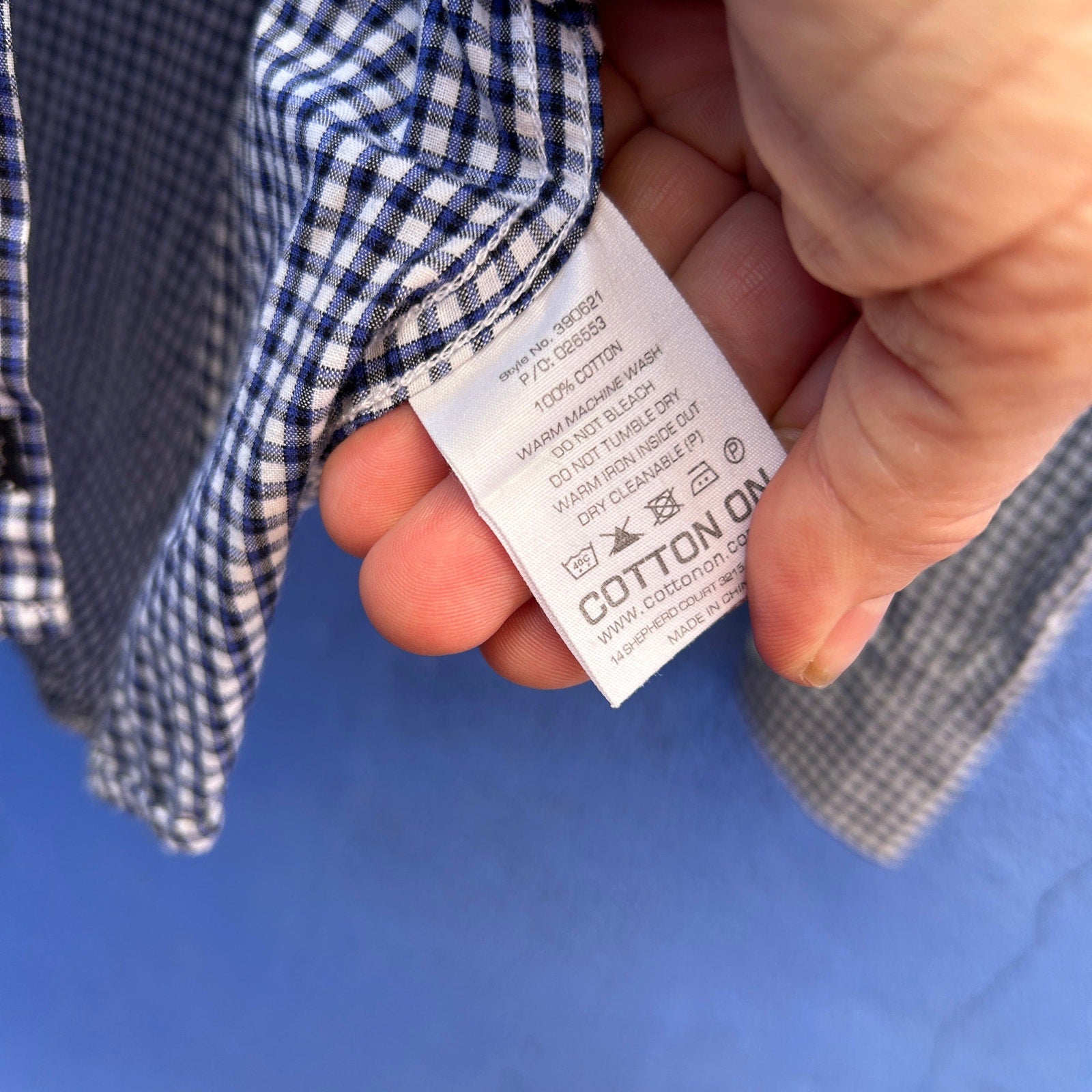 cotton on men's blue and white check button up shirt