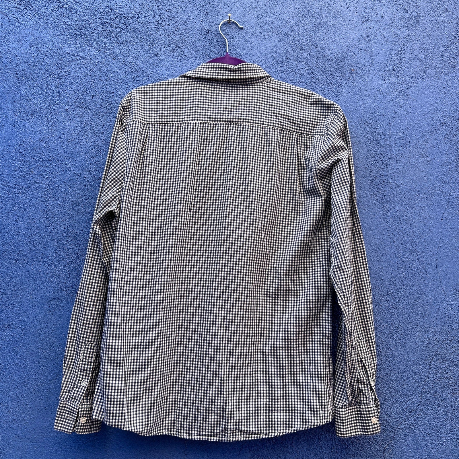 cotton on men's blue and white check button up shirt size large