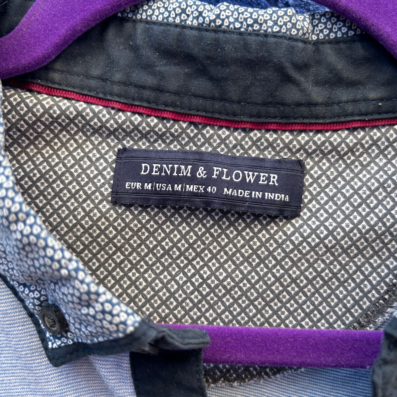 denim and flower men's polo shirt size medium