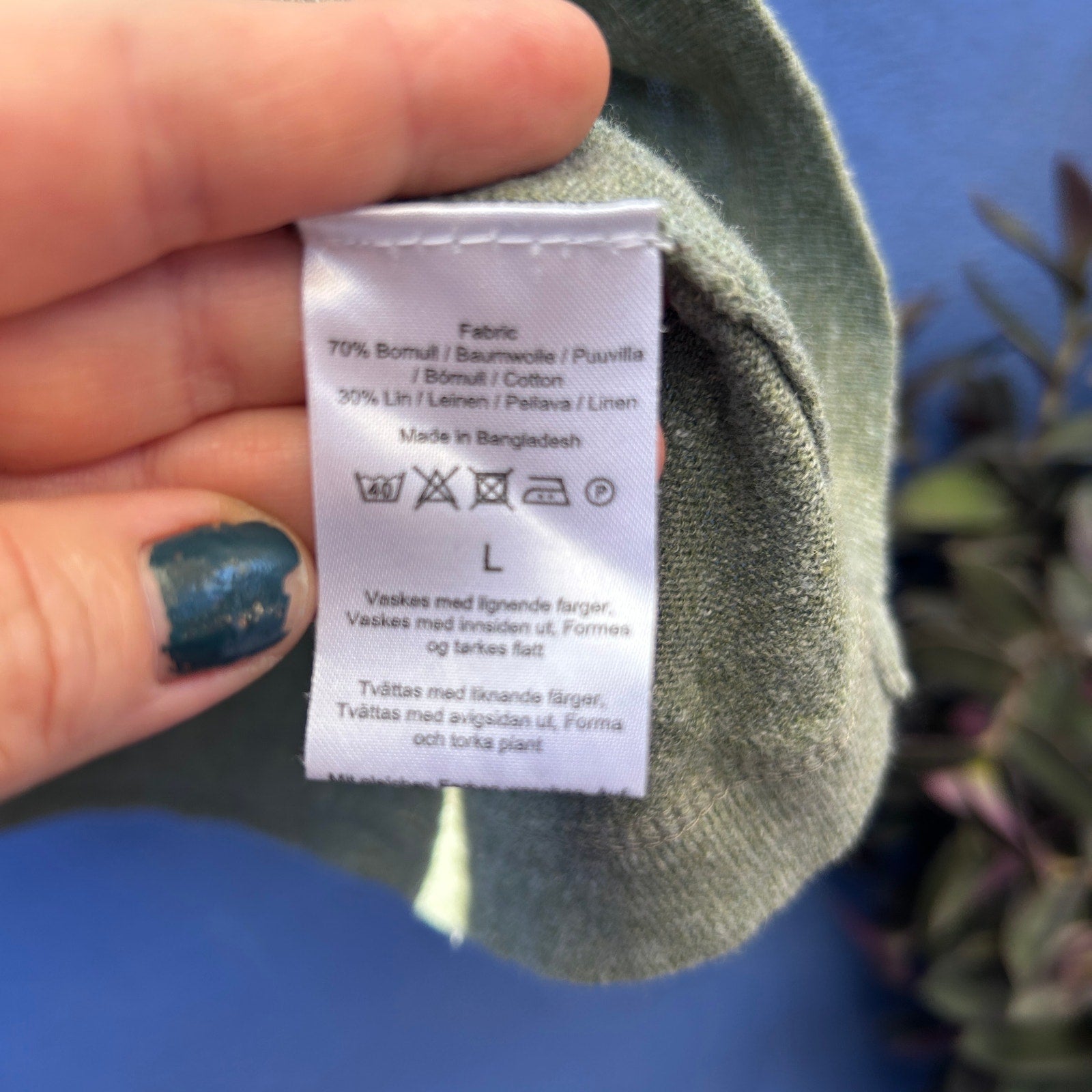 dressman linen blend raglan knit long sleeve pop over top size large
