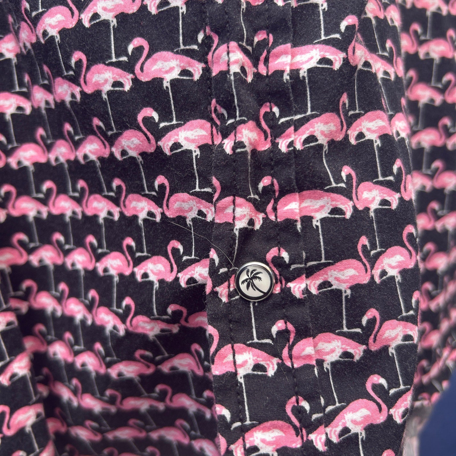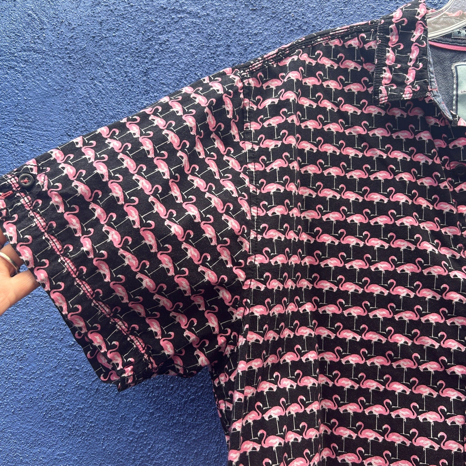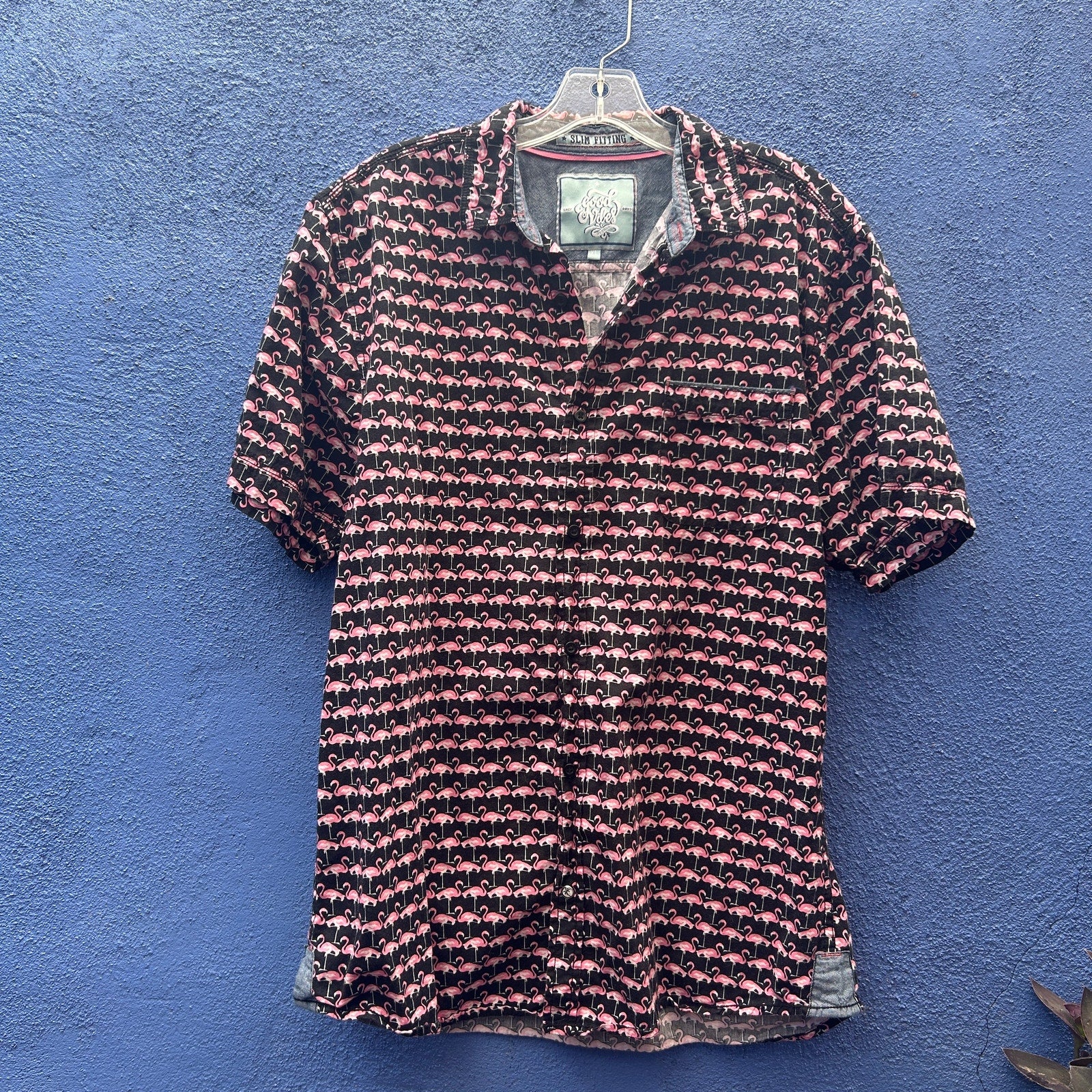 good vibes slim fitting pink flamingo short sleeve button up size extra large