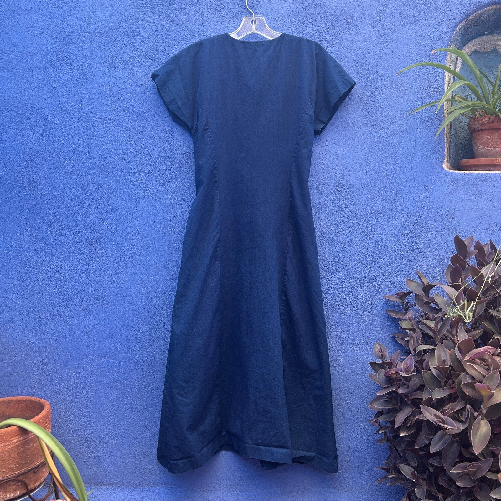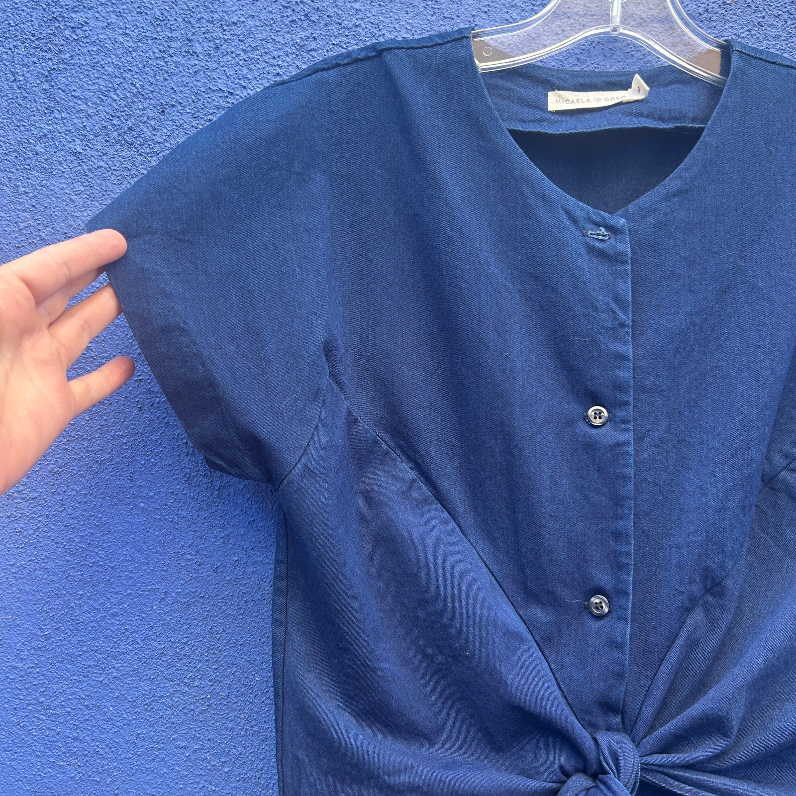 easy and sweet with a light denim feel / full button front / tie detail in front / dolman cut sleeves / excellent preowned condition