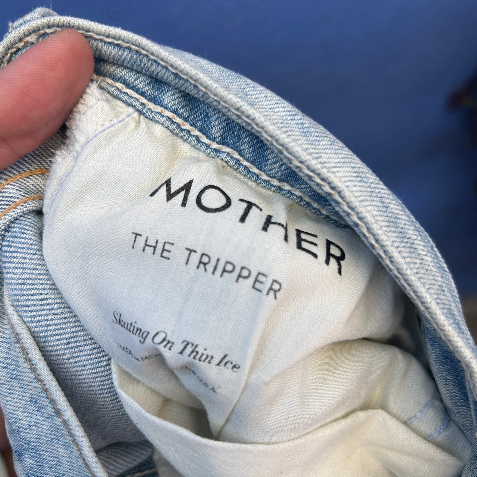 mother the tripper light washed distressed jeans size 32