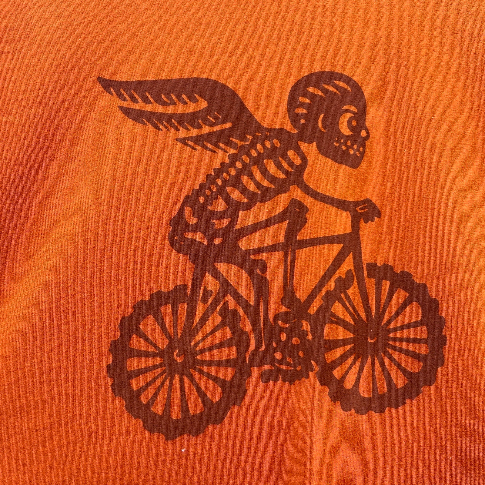 fun angel skeleton cyclist graphic on quality orange cotton / NEW