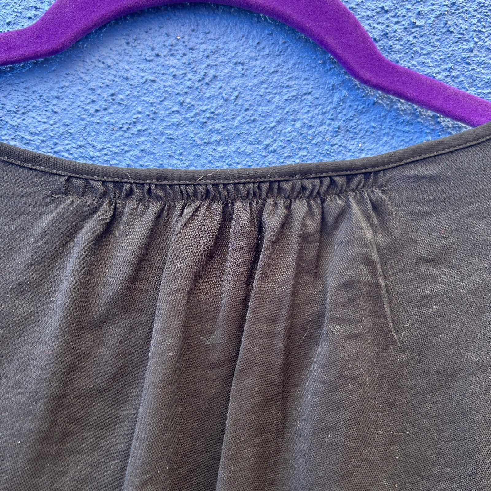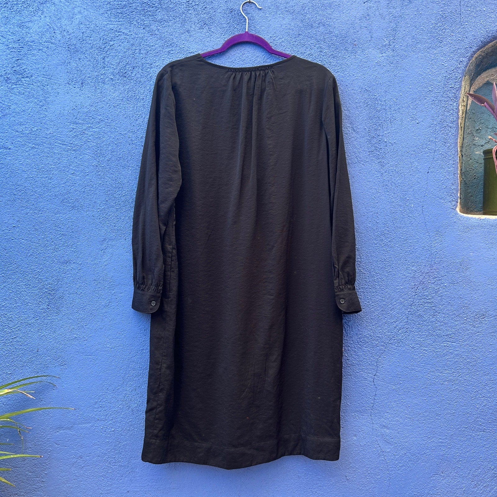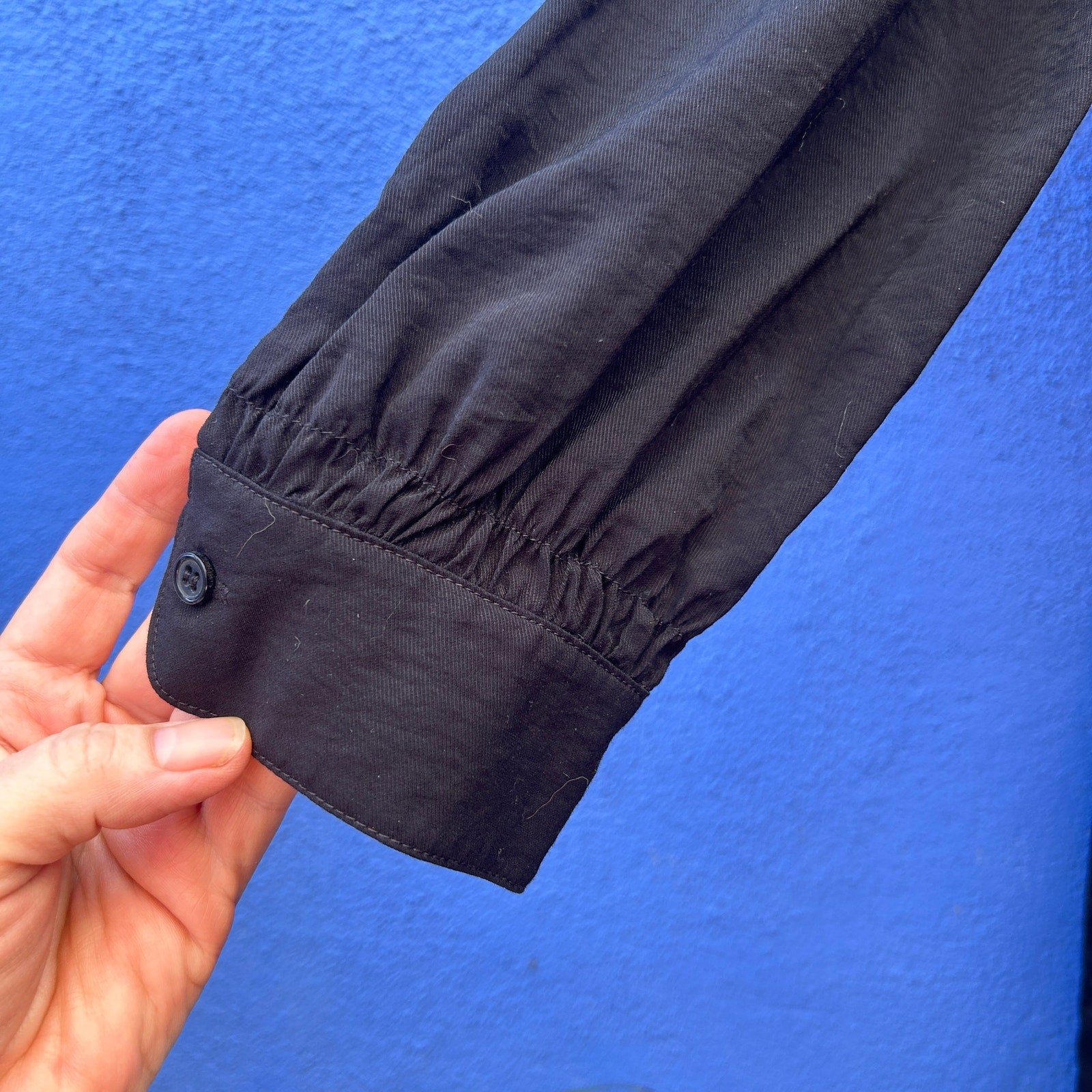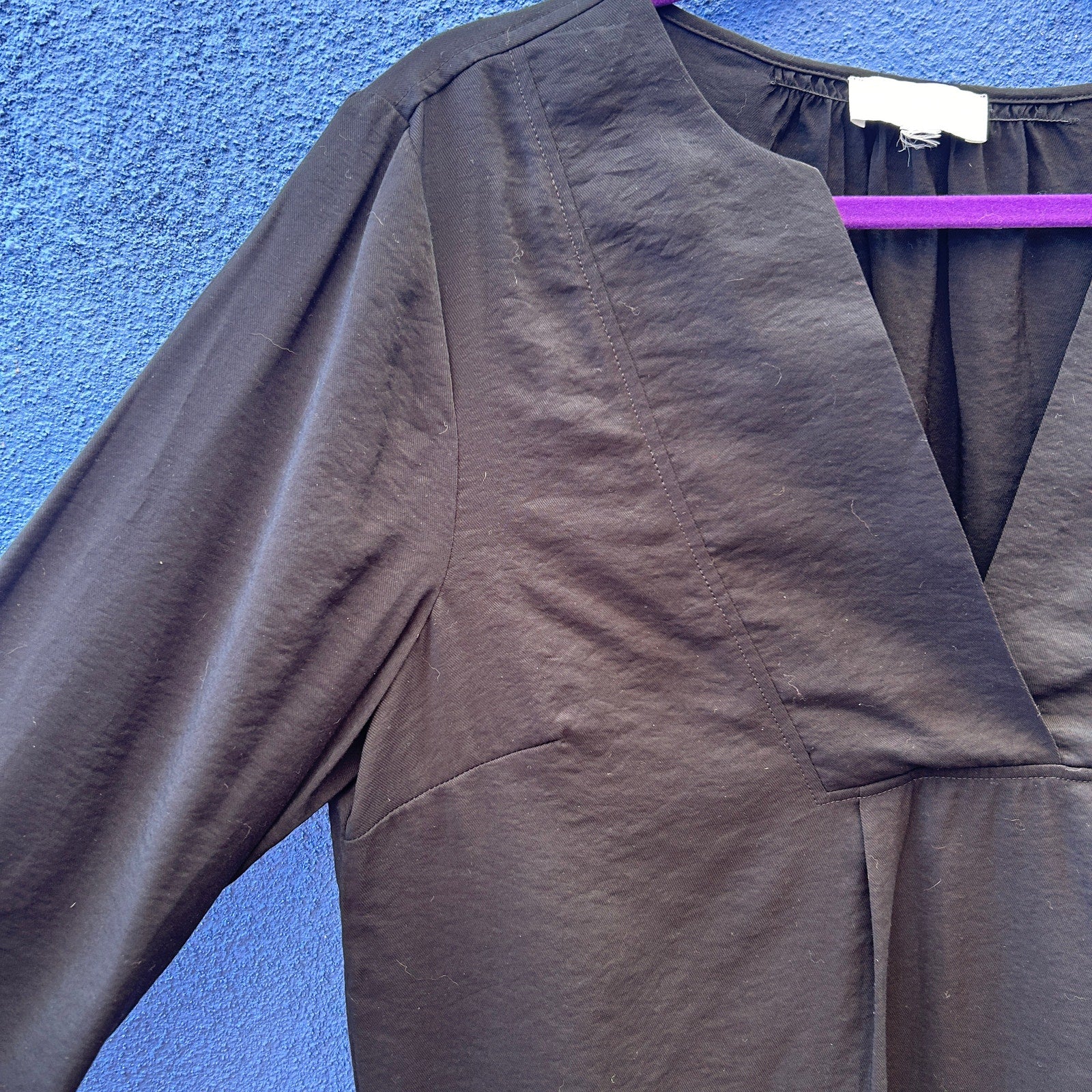 a staple capsule wardrobe piece / overlapped v-neck cut / elastic details at back of neck and cuffs for extra nice fit / side pockets / slightly ballooned sleeves / popover styling / easy and classic / excellent preowned condition / size tag is missing, listing as a medium based on fit and measurements