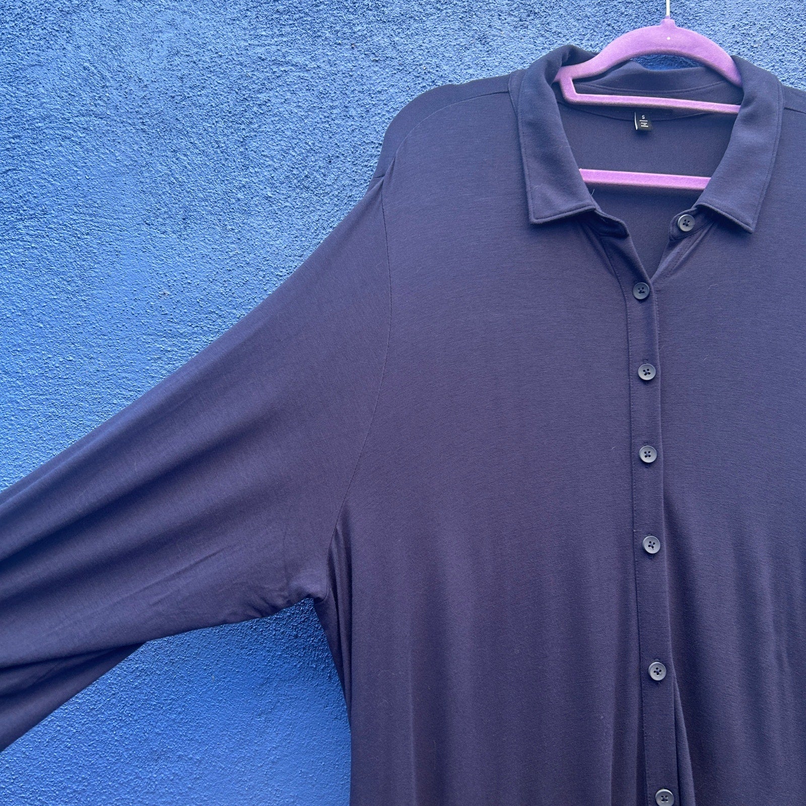 Universal Standard Women's Sally Liquid Jersey Shirt Dress / Long Sleeve / Collared Collar / V Neck Neckline / Full Button Front / Double Side Button Slits / Super Stretchy and comfy / like new condition