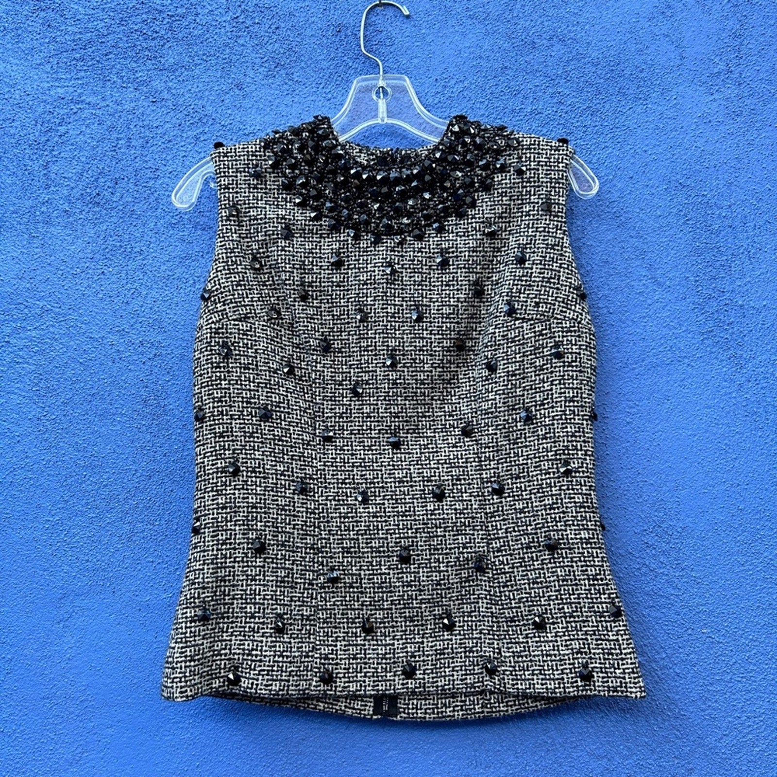 Gorgeous and classic / Sleeveless top with incredible faceted bead detail and back zip closure / Maxi skirt with side closure and side slit at hem / Excellent vintage condition / Fits like a modern medium - listing as such