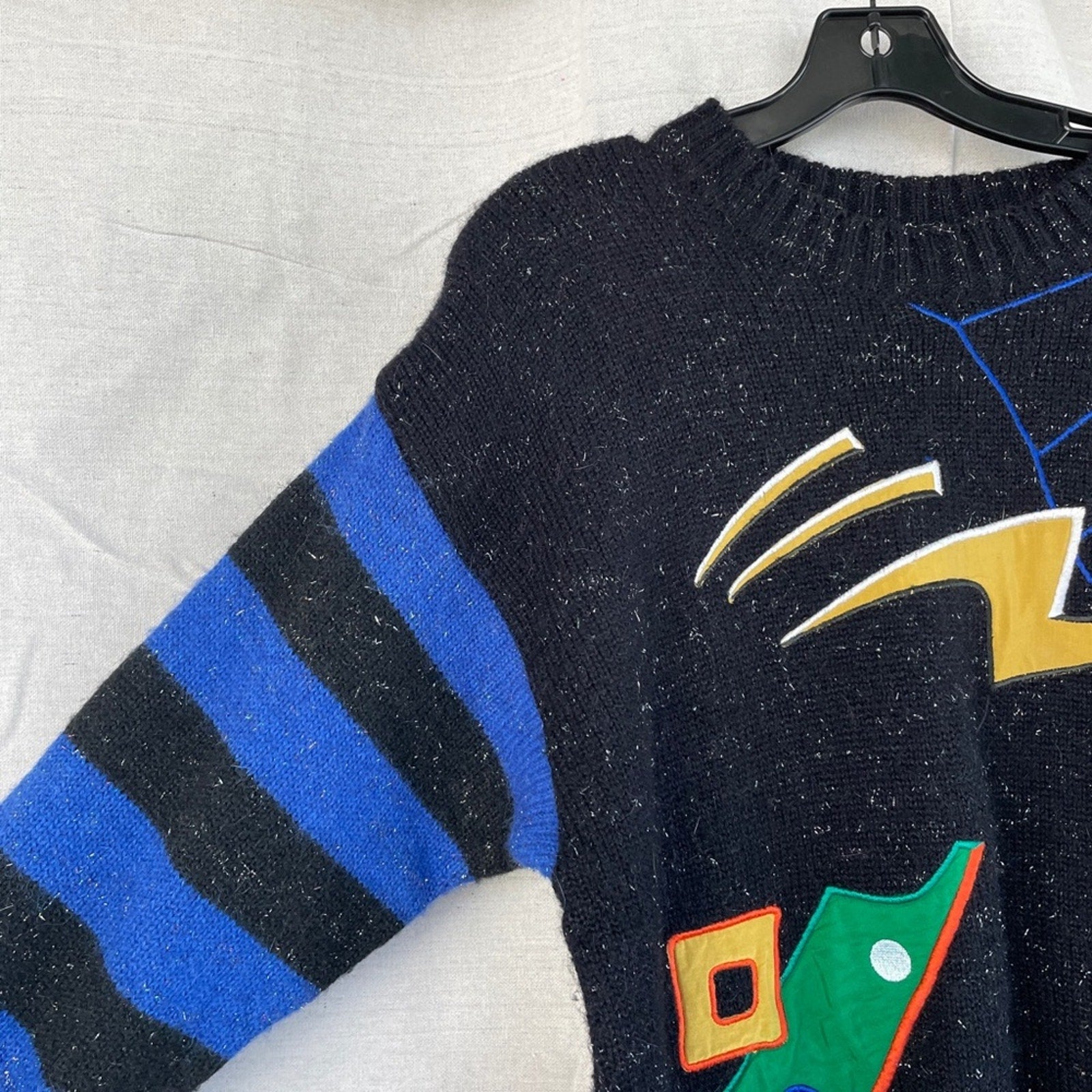 Vintage 80s Funky Japanese Appliqué and Embroidered Wool Alpaca Blend Sweater Size Medium - Large