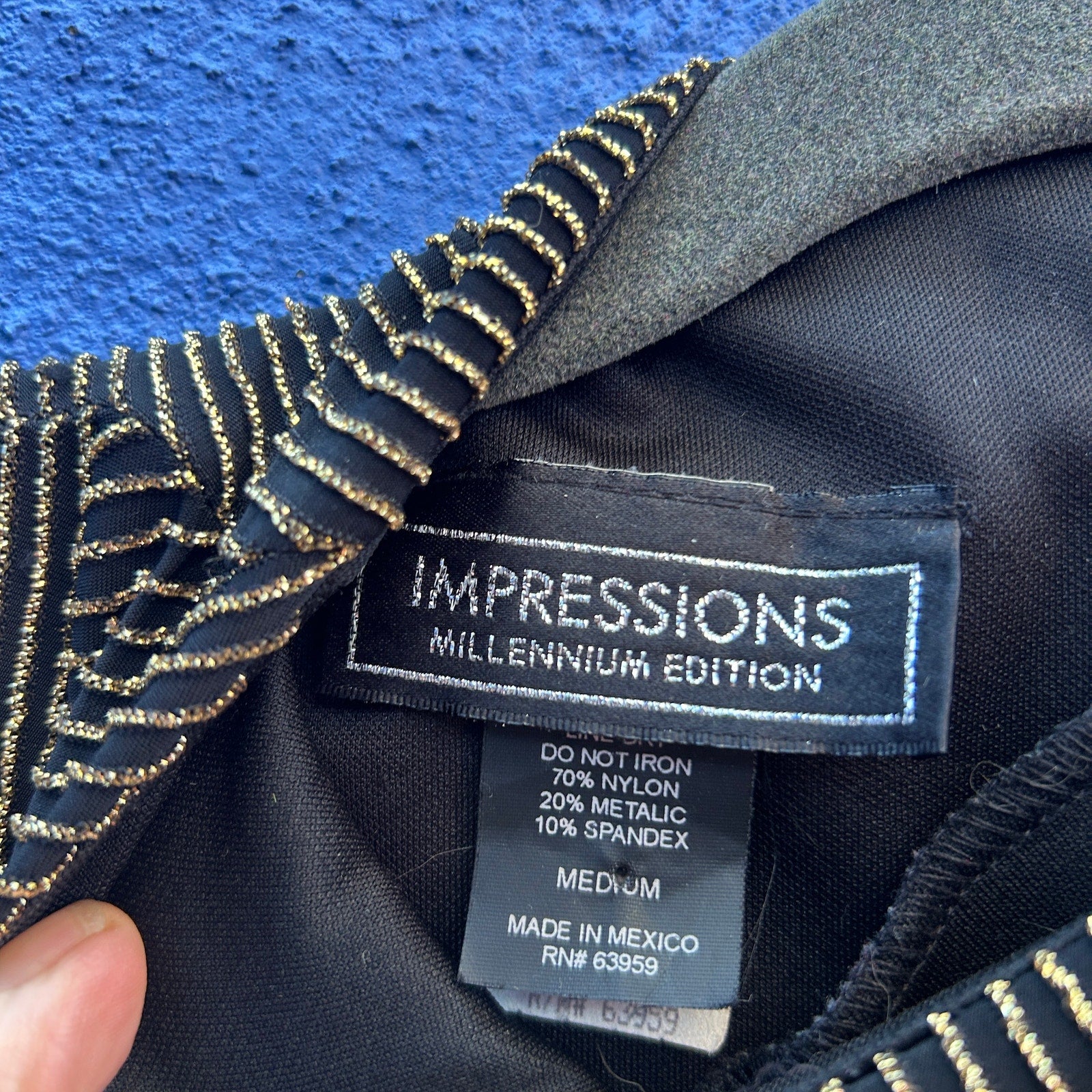 vintage 90s impression sleeveless gold metallic ribbed mockneck top size medium